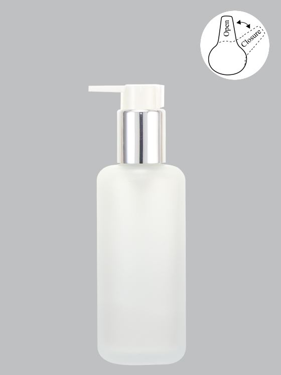 L-1550玻璃氟化瓶+亮銀直束開閉式塑膠壓頭+白色長嘴按鈕+本色防壓扣