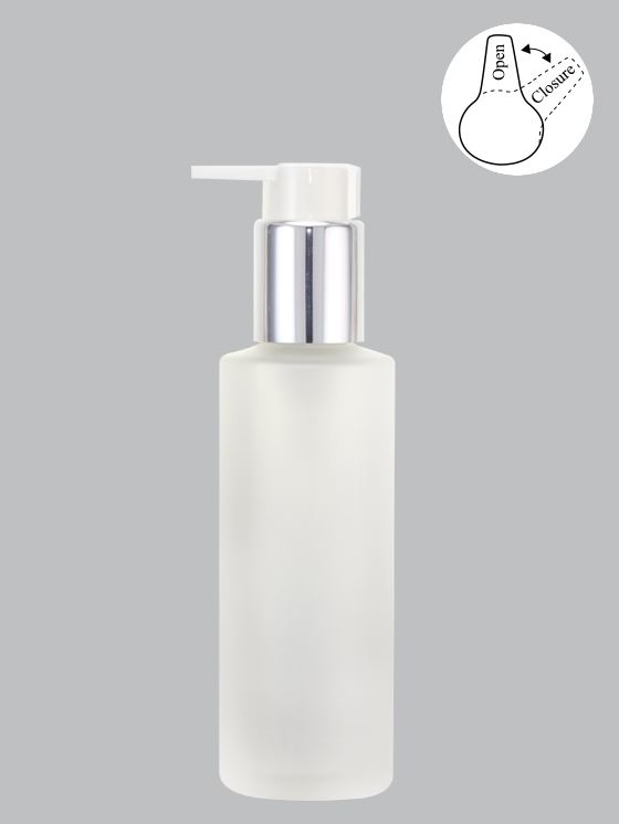 L-1202玻璃氟化瓶+ 亮銀直束開閉式塑膠壓頭+白色長嘴按鈕+本色防壓扣