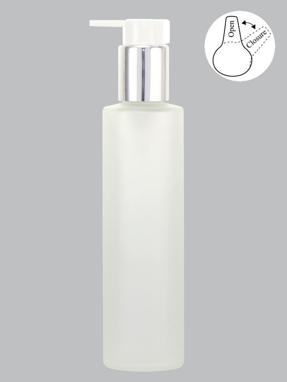 L-1502玻璃氟化瓶+亮銀直束開閉式塑膠壓頭+白色長嘴按鈕+本色防壓扣