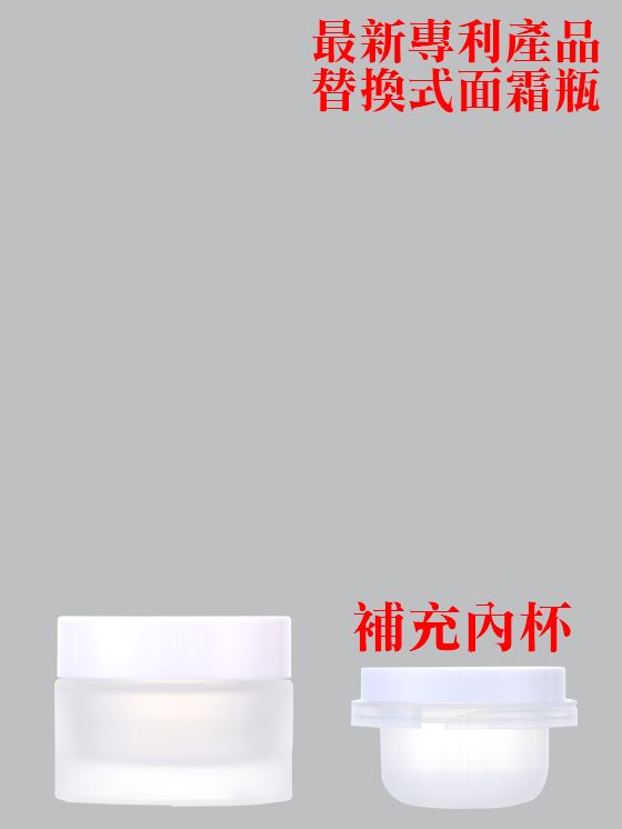 CR-0030玻璃面霜瓶(Glass)+拉環內杯(PP)+凹凸片(PP)+面霜蓋(PP) & 拉環內杯(PP)(補充內杯)+凹凸片(PP)+內杯蓋(PP)