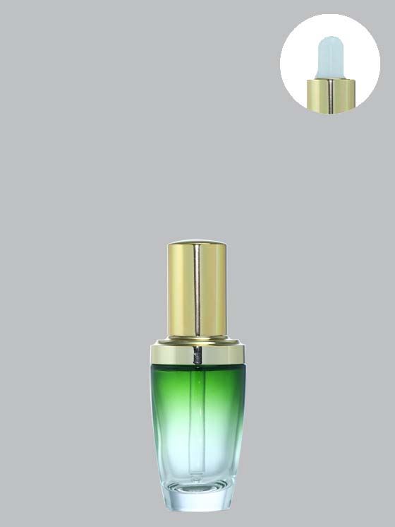 LDR-0030玻璃氟化瓶+電鍍肩套+膠帽+有洞鋁蓋+玻璃吸管+鋁上蓋