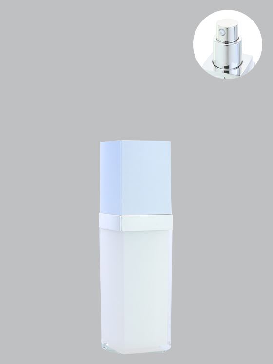 LY-0035(壓克力)瓶身+白內膽+電鍍肩套+按鈕+直束壓頭+四方上蓋
