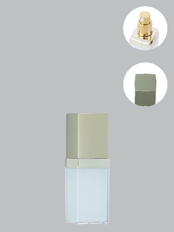 LY-0025(壓克力)瓶身+白內膽+電鍍肩套+按鈕+直束壓頭+四方上蓋