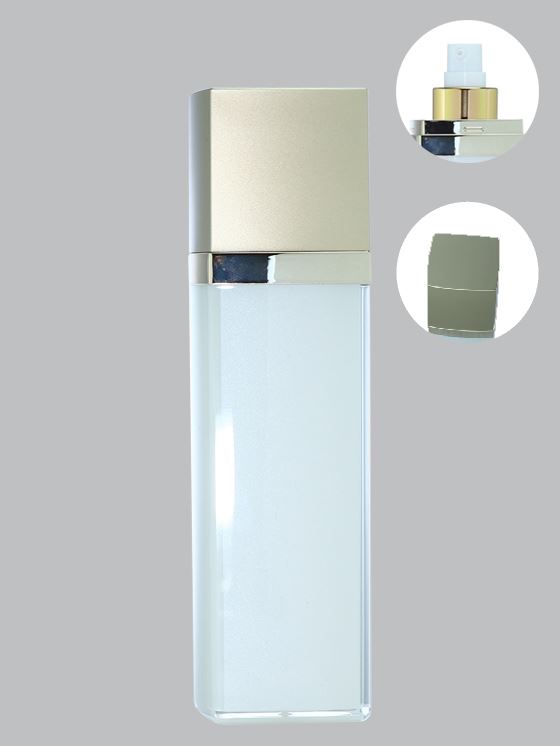 LY-0120(壓克力)瓶身+白內膽+電鍍肩套+按鈕+鋁壓頭+四方上蓋