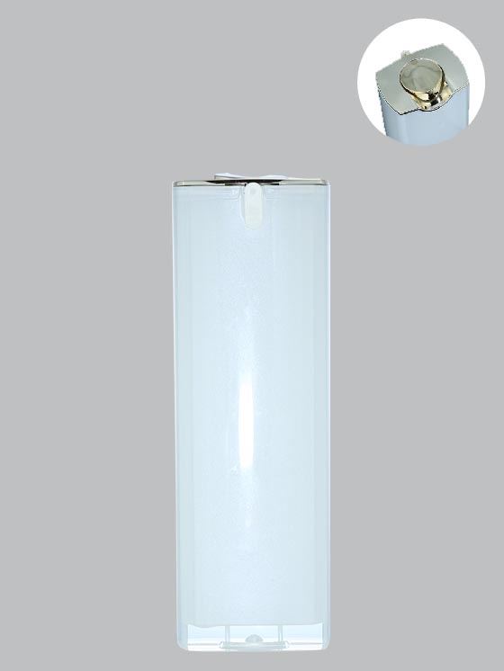 LGG-0030(壓克力)長方瓶身+白色內瓶+活塞+按鈕+真空壓頭+白色塞嘴+長方型肩套