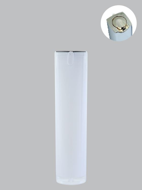 LGC-0030(壓克力)下圓上四角瓶身+白色內瓶+活塞+按鈕+真空壓頭+白色塞嘴+四方肩套